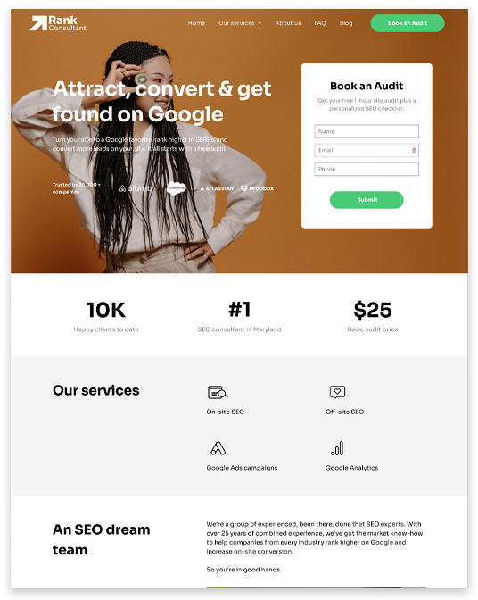 Seo consultant landing page